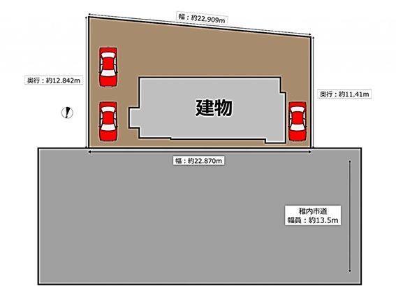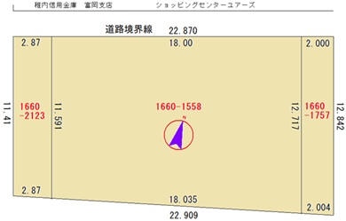 | 接道/向/間口 | 幅員13.5m/北向/間口22.870m |
