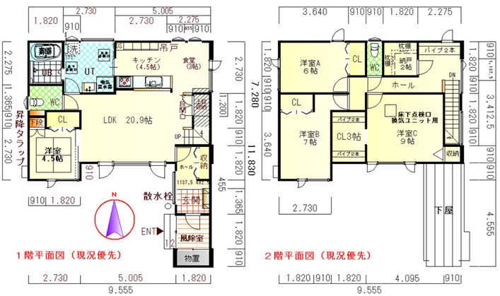 | 延床面積 | 合計 136.62㎡(41.24坪) |