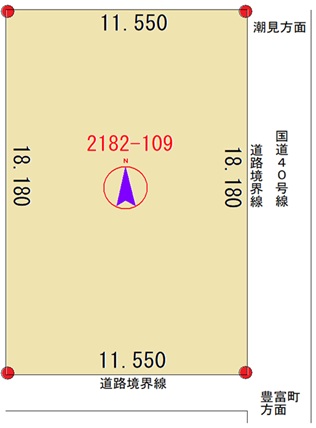 | 接道/向/間口 | 幅員22m/東向/間口18.180m・幅員6.5m/南向/間口11.550m |